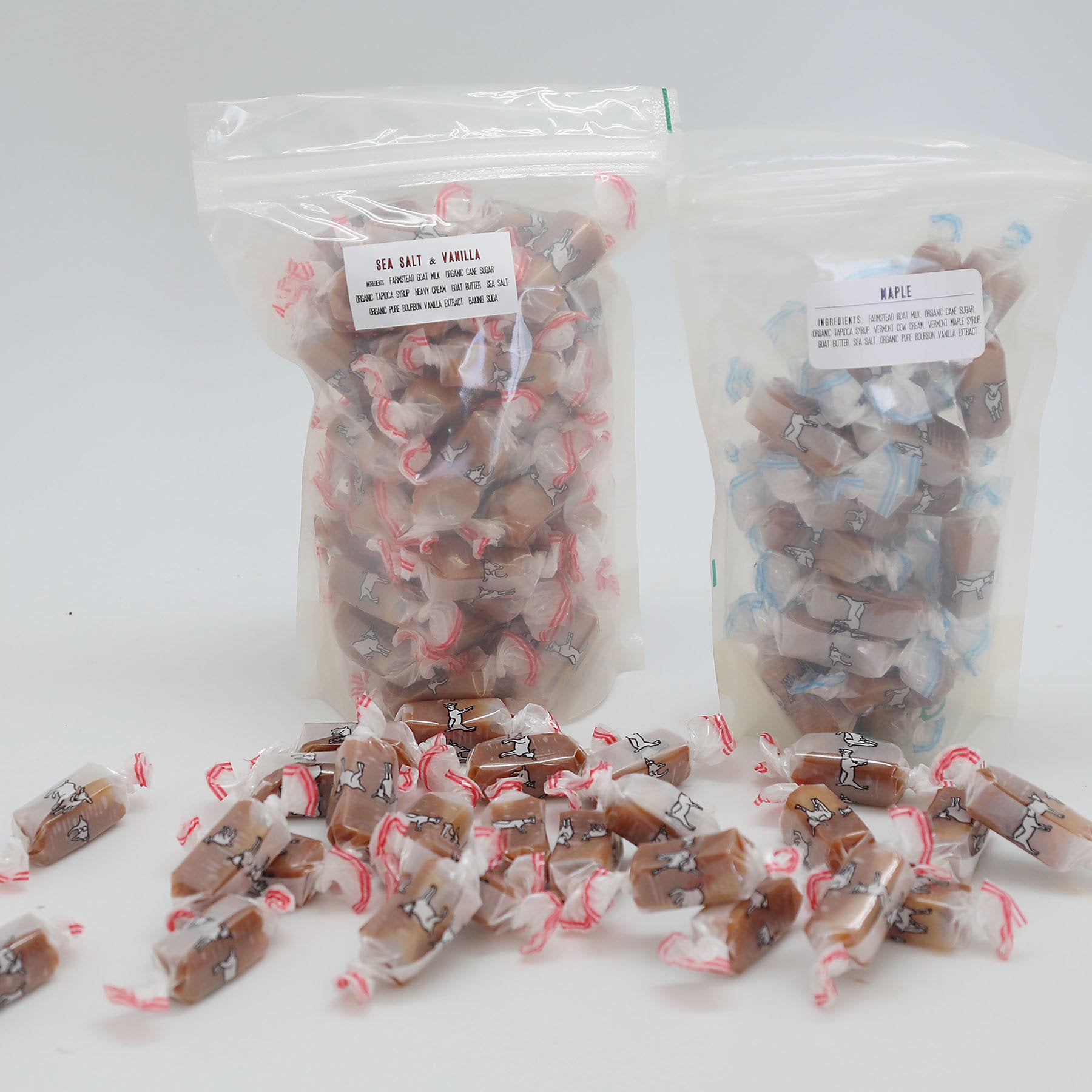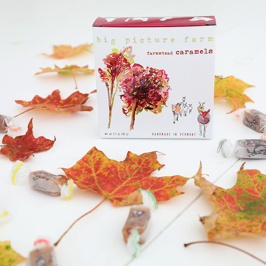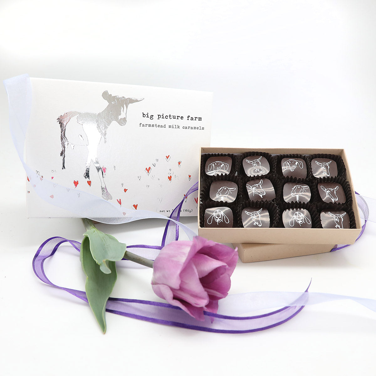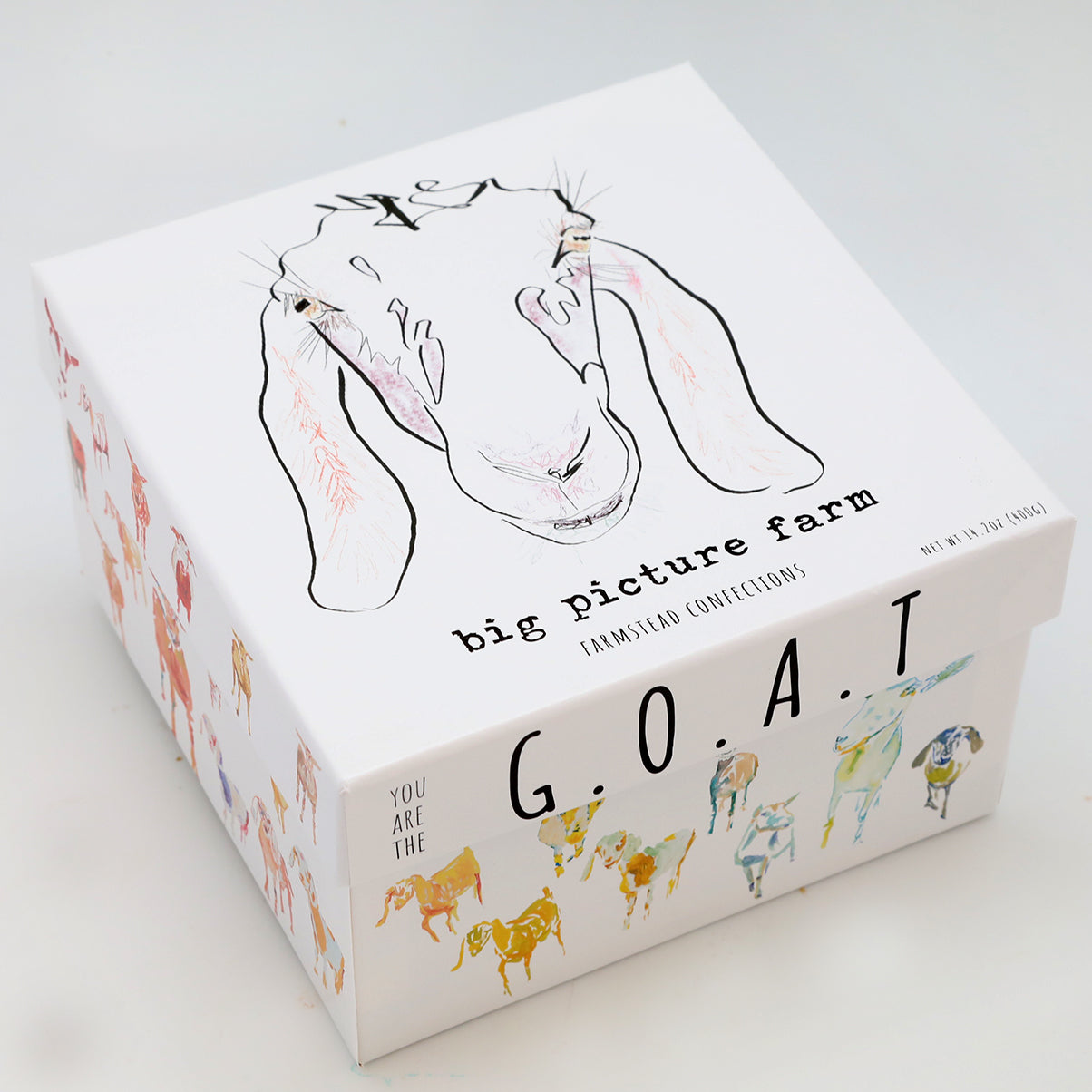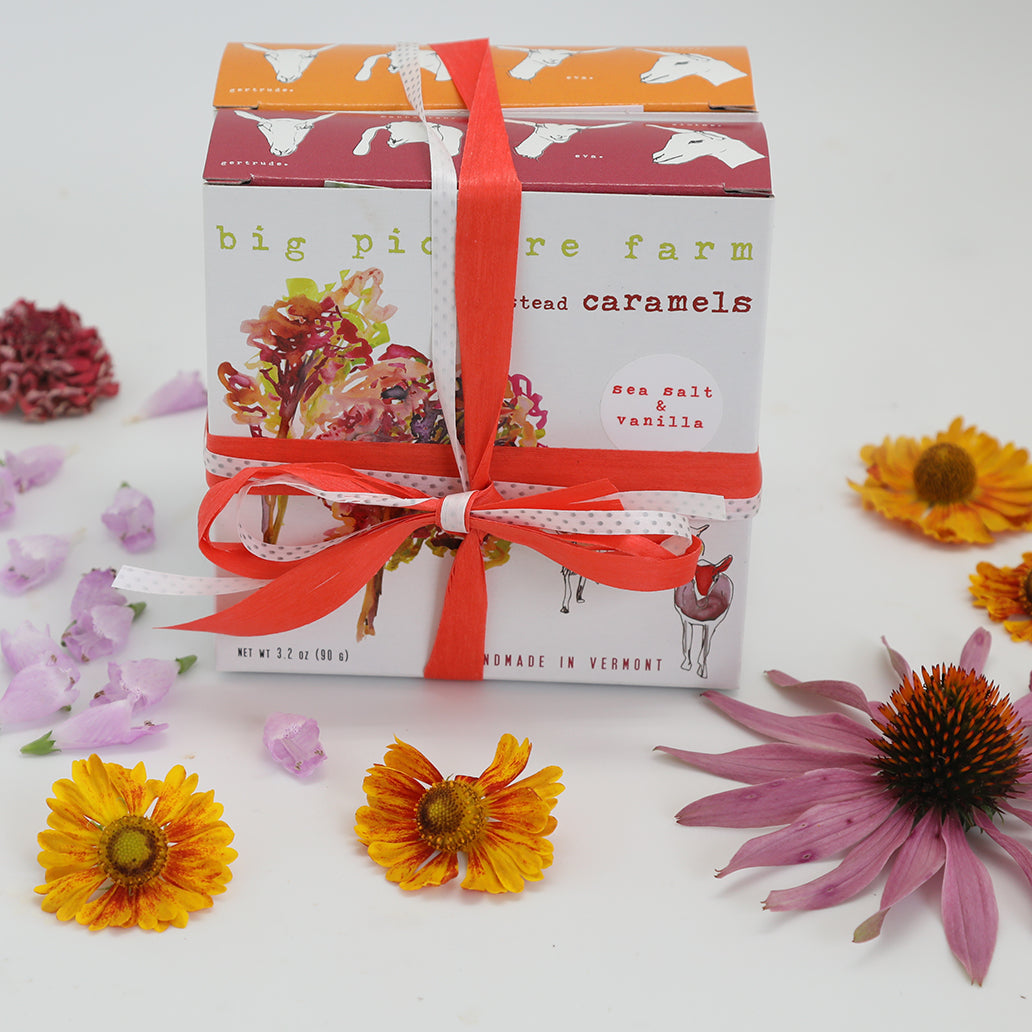 Big Picture Farm is committed to making the finest, most delicious caramels in the world. Our secret ingredient is our milk -- we use fresh, creamy, delicious milk from our own herd of happy and healthy, free-browsing companions. Our Farmstead Goat Milk Caramels have been awarded more than a dozen national awards including Best Confection four times at the Fancy Food Show and three Good Food Awards.  View the ingredients here.
