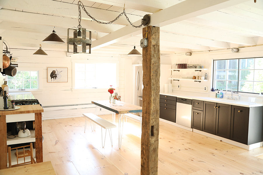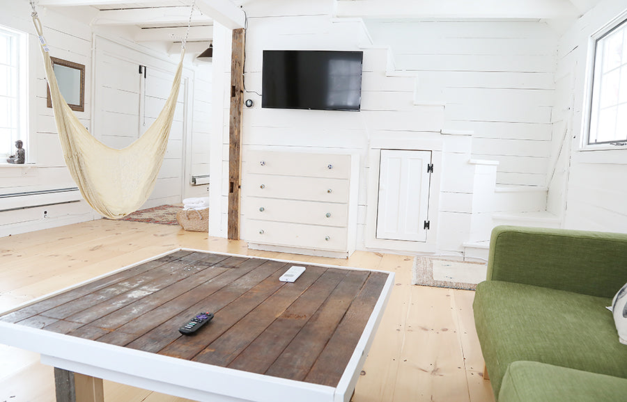 Surrounded by flower and vegetable gardens, the Colt Barn is a beautiful rustic-meets-contemporary, barn-meets-gallery gem located on the Big Picture Farm property near the historic barn and farmstead cheese/caramel operation. It features two bedrooms each with a luxurious king bed and fancy white Matouk Linens and down pillows and comforters. The downstairs kitchen is bright and airy and clean and well appointed.The first floor features an expansive chef's kitchen, dining table, and built-in seating area, as well as a living room (with couch and smart tv), and the bathroom (newly renovated to include tiled walk-in shower with rain shower system). The two bedrooms upstairs are separated by a long hallway furnished with an area rug and desk.